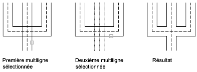 Crée une intersection en T fusionné entre deux multilignes. La multiligne est ajustée ou étendue à son intersection avec l'autre multiligne.