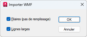 Détermine si les métafichiers doivent conserver leur largeur de ligne relative et s'ils doivent être importés en tant qu'objets filaires ou solides.