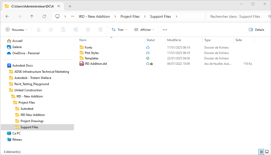 Les fichiers de support que vous ajoutez aux dossiers locaux seront synchronisés dans Autodesk Docs avec Desktop Connector.