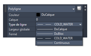Permet de créer une définition de type de ligne en fonction des objets sélectionnés et de les enregistrer dans un fichier de définition de type de ligne (LIN).