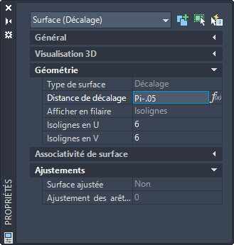 Les contraintes dimensionnelles sont des expressions définies par l'utilisateur ; elles sont appliquées dans la palette Propriétés de cette surface.