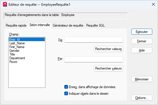 Ouvre la boîte de dialogue Affichage des données et Options de requête.