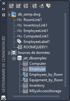Contient des noeuds pour chacun des dessins ouverts et un noeud Sources de données qui contient toutes les sources de données configurées sur votre système.