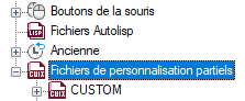 Les fichiers CUIx partiels chargés dans le fichier CUIx principal sont répertoriés sous le noeud Fichiers de personnalisation partiels.