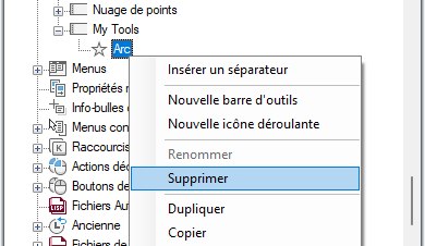 3. A l'aide du bouton droit de la souris, cliquez sur la commande ou sur le contrôle à supprimer. Cliquez sur le bouton Supprimer.