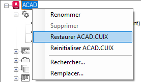 Remarque : Lors de la réinitialisation, seuls les fichiers CUIx du dossier UserDataCache figurant dans l'emplacement d'installation du programme peuvent être réinitialisés.
