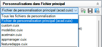 - Choisissez Fichier de personnalisation principal <nom de fichier> ou un des fichiers CUIx chargés afin d'en faire le fichier CUIx de travail.