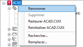 Créez, renommez, réinitialisez ou restaurez des fichiers de personnalisation (CUIx) à l'aide de l'éditeur Personnaliser l'interface utilisateur. Spécifiez le fichier de personnalisation principal ou d'entreprise du programme.