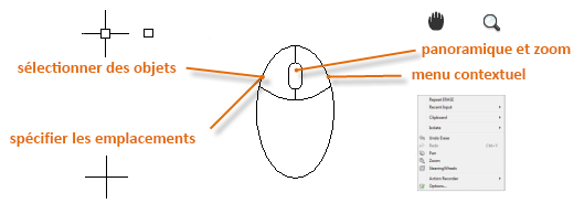 La plupart des utilisateurs utilisent un périphérique de pointage de type souris, mais d'autres périphériques disposent de commandes équivalentes.