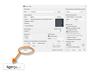 La fenêtre d'aperçu contient une barre d'outils comprenant plusieurs commandes, notamment Tracer et Fermer la fenêtre d'aperçu.