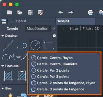 D'autres options de cercle sont disponibles dans la liste déroulante :