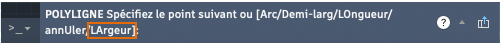 Les polylignes peuvent avoir une largeur constante, ou bien différentes largeurs de départ et de fin. Lorsque vous spécifiez le premier point de la polyligne, vous pouvez utiliser l'option Largeur pour définir la largeur de tous les nouveaux segments créés. Vous pouvez modifier la valeur de largeur à tout moment, même au cours de la création des segments.