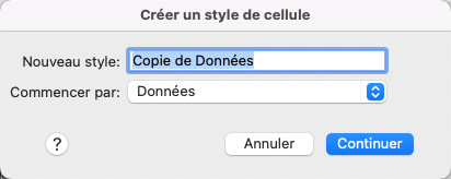 Indique le nom du nouveau style de cellule et spécifie le style de tableau existant sur lequel sera basé le nouveau style de cellule.