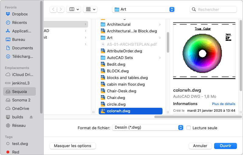 Indique si le fichier doit être ouvert en lecture seule. Dans ce cas, il est impossible d'enregistrer des modifications dans le fichier en utilisant son nom d'origine.