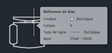 Les info-bulles de survol affichent les valeurs courantes de certaines propriétés lorsque le curseur est placé au-dessus d'un objet dans la zone de dessin.