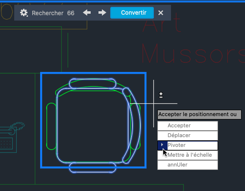 Lorsque vous sélectionnez une géométrie à convertir, AutoCAD recherche et met en surbrillance toutes les occurrences de la même géométrie. Vous pouvez ensuite choisir de convertir l’objet sélectionné et les occurrences trouvées en bloc.