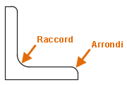 Un angle intérieur est appelé un raccord et un angle extérieur est appelé un arrondi ; vous pouvez les créer à l'aide de la commande RACCORD.