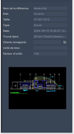 L'aperçu miniature affiche une petite image de la référence de fichier sélectionnée. Si aucun aperçu n'est disponible, le texte "Aperçu non disponible" s'affiche.