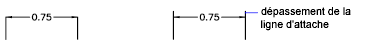 Spécifie la distance correspondant à l'allongement des lignes d'attache au-delà de la ligne de cote (variable système DIMEXE)