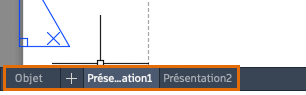 Par défaut, un onglet Objet et plusieurs onglets Présentation nommés sont affichés dans l'angle inférieur gauche de la zone de dessin.