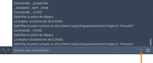 Vous pouvez également afficher un historique de commande étendu sans avoir à ouvrir une nouvelle fenêtre. Appuyez sur la touche F2 ou utilisez le contrôle disponible à l'extrémité droite de la ligne de commande pour afficher l'historique de commande étendu.
