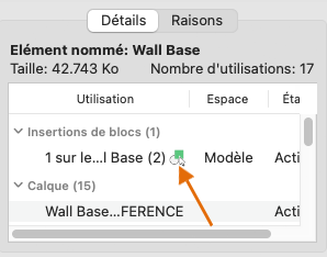 Dresse la liste des objets utilisés dans le dessin en cours et qui ne peuvent pas être purgés.