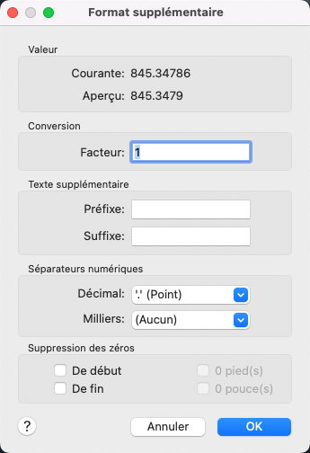 Indique le facteur de conversion à utiliser sur la valeur courante. Le paramètre par défaut est 1 pour aucune conversion.