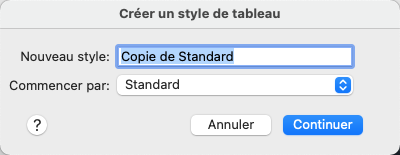 Indique un style de tableau existant dont les paramètres constituent le paramétrage par défaut du nouveau style de tableau.