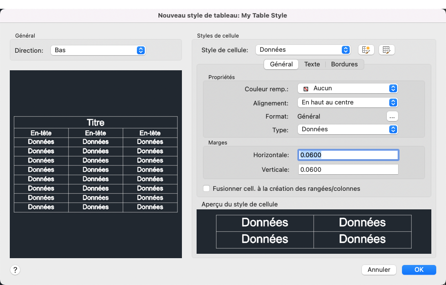 Création d'un style de tableau