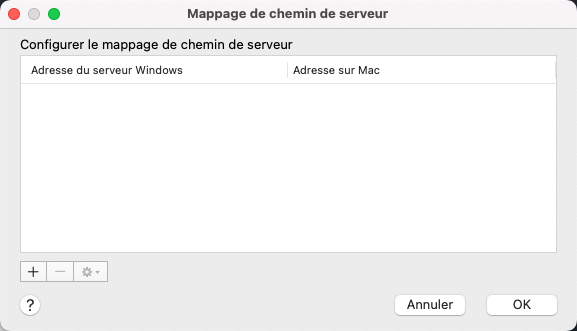 La boîte de dialogue Mappage de chemin de serveur s'ouvre.