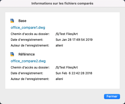 Affiche des informations sur les deux fichiers de dessin comparés.