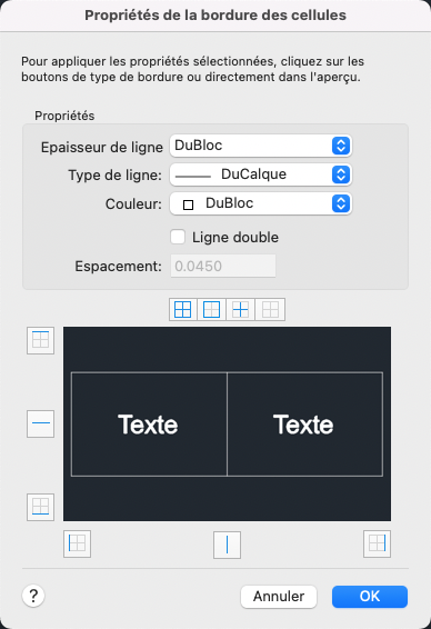 Gère les propriétés des bordures des cellules de tableau sélectionnées.