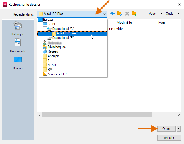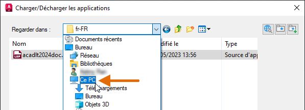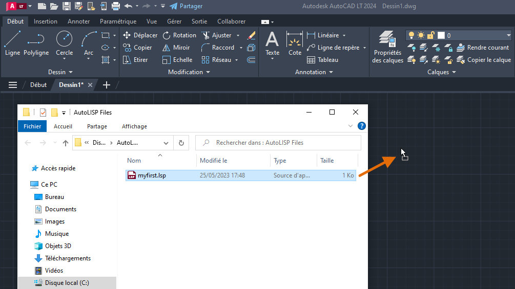Maintenant que vous avez créé le fichier, au lieu d’utiliser la boîte de dialogue Charger/Décharger les applications qui s’affiche avec la commande APPLOAD, vous allez charger le fichier LSP à l’aide de l’Explorateur de fichiers.