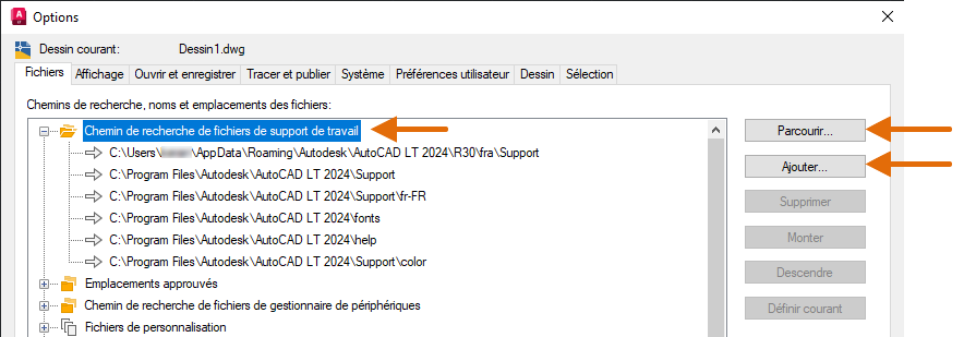 AutoCAD LT recherche et charge automatiquement ces quatre fichiers lorsqu’ils se trouvent dans les chemins de support correspondants :