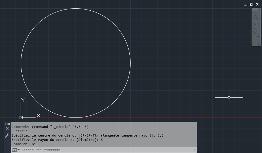 Dans les étapes suivantes, vous allez dessiner un cercle et effectuer un zoom sur l’étendue du dessin à l’aide de la fonction command.
