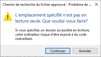| TRUSTEDPATHS | Indique les dossiers autorisés à charger et à exécuter des fichiers contenant du code. | Varie, peut être verrouillé par un administrateur CAO | Registre |