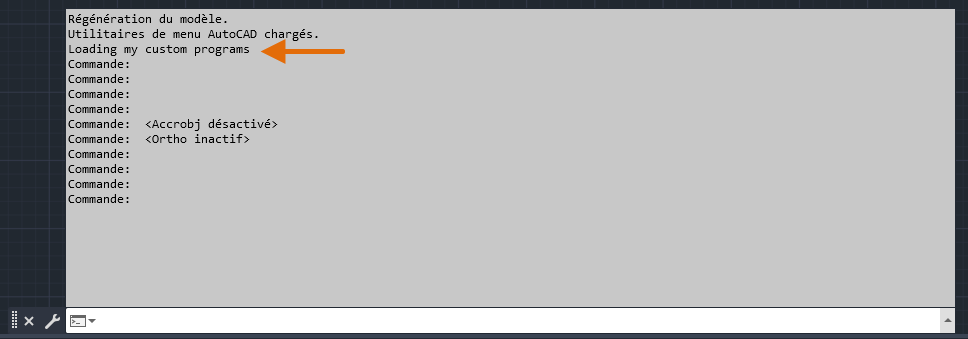 Le fichier AutoLISP que vous avez ajouté à la suite de démarrage est automatiquement chargé dans le dessin actuel.