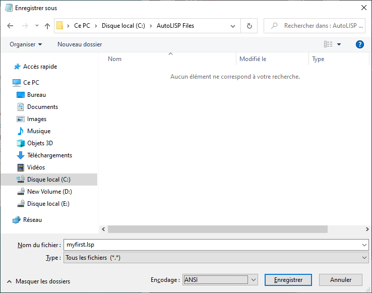 Si vous avez créé le fichier myfirst.lsp dans la section précédente, vous pouvez sélectionner ce fichier.