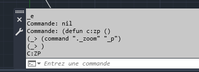 Essayons la fonction defun et définissons une commande personnalisée nommée ZP qui permet d’effectuer un zoom sur la vue précédente du dessin :