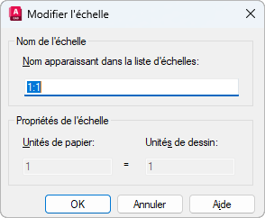Entrez un nom numérique ou une description. Par exemple, dans un dessin architectural utilisant une échelle anglo-saxonne type, vous pouvez entrer soit 1"=4', soit 1:48.