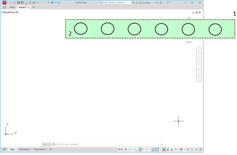 La variable SELECTIONOFFSCREEN activée permet de sélectionner les entités qui sont hors de l'écran (le point 1, dans le graphique, est en dehors de l'écran principal).