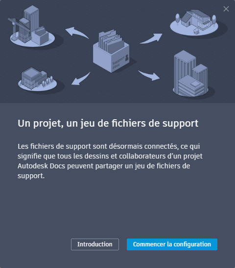 Les étapes suivantes expliquent comment configurer les fichiers de support connectés pour un projet Autodesk Docs existant.