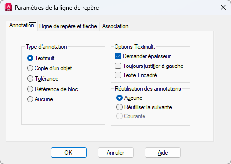 Définit les options de réutilisation d'une annotation de ligne de repère.
