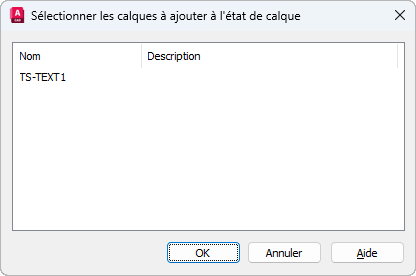 Affiche le nom et la description des calques qui n'ont pas été ajoutés à l'état de calque. Sélectionnez les calques à ajouter et cliquez sur OK.