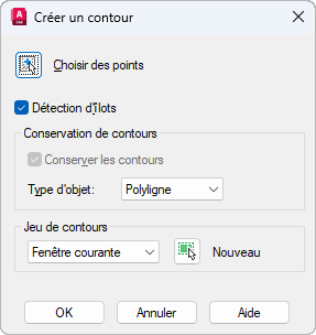 Détermine le type du nouveau contour. CONTOUR crée le contour sous la forme d'une région ou d'un objet polyligne.