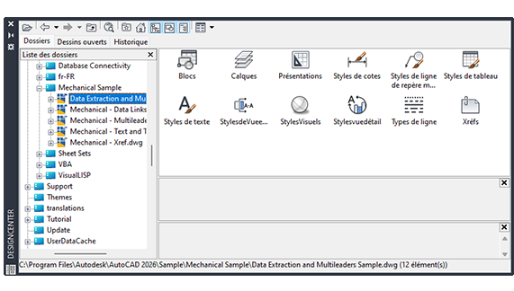 Permet d'organiser l'accès à des dessins, à des blocs, à des hachures et à d'autres contenus de dessin.