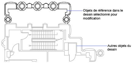 Vous pouvez modifier les références externes et redéfinir les définitions de bloc à partir du dessin courant à l'aide de la fonction d'édition des références sur place. Les blocs et les xréfs sont considérés comme des références.