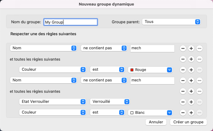- Pour les regrouper à l'aide de règles logiques OR, cliquez sur