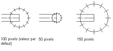 La boussole peut être superposée ou alignée par rapport aux objets du dessin. Pour plus de clarté, vous pouvez modifier la couleur et la taille de l'affichage de la boussole. La taille de la boussole est exprimée en pixels et reste constante, quel que soit le facteur d'échelle de zoom appliqué au dessin.