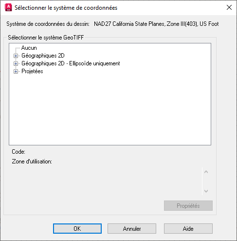 Indique le code GeoTIFF du système de coordonnées sélectionné.